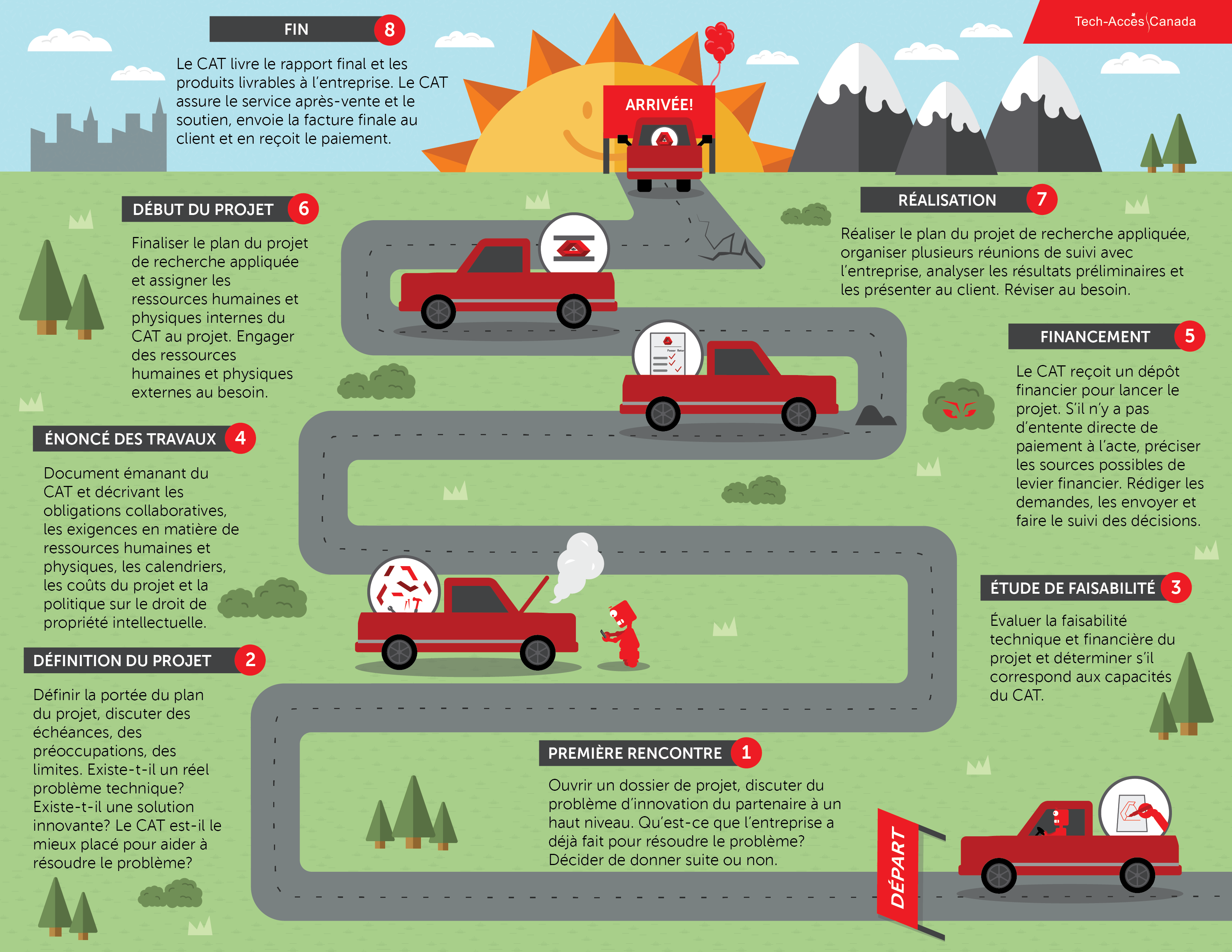 Il est facile de travailler avec un CAT. Les CAT sont de votre côté! Ils apprécient la collaboration avec toutes les entreprises et les acteurs de l’innovation. Même si les centres sont répartis dans l’ensemble du pays et dans tous les secteurs industriels, ils fonctionnent tous selon un modèle commun de CAT.